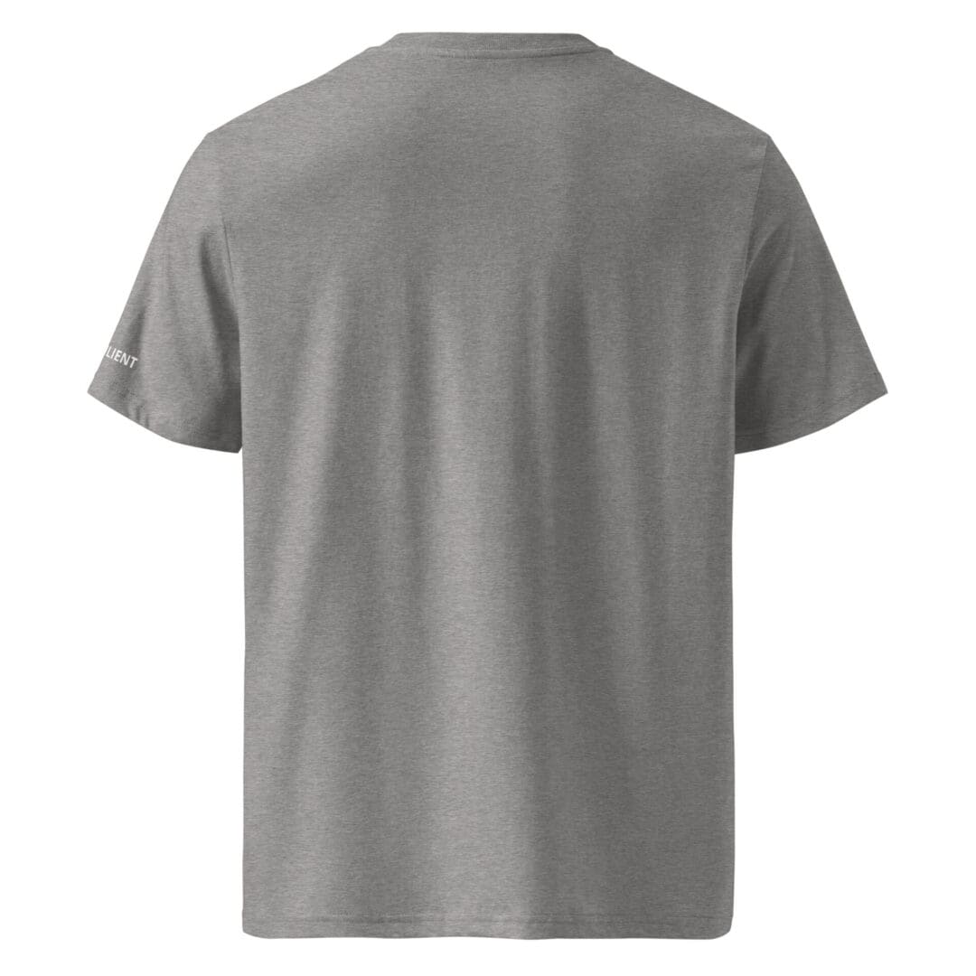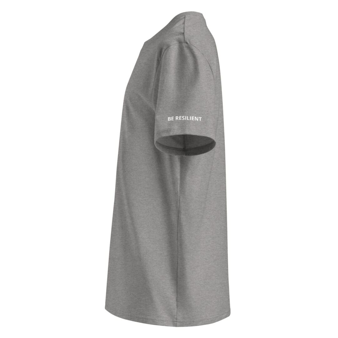 This unisex tee is built for repeat wear—crafted from 100% organic combed ring-spun cotton for a soft feel with serious staying power. A textured ribbed collar adds a subtle edge, while the “Be Resilient” detail along the left arm band keeps the message close—quiet, intentional, and worn with purpose.